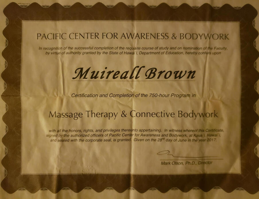 I recommend Muir to everyone looking for myofascial work as well as anyone who wishes to find a quiet mind from a genuine, caring and intelligent being."