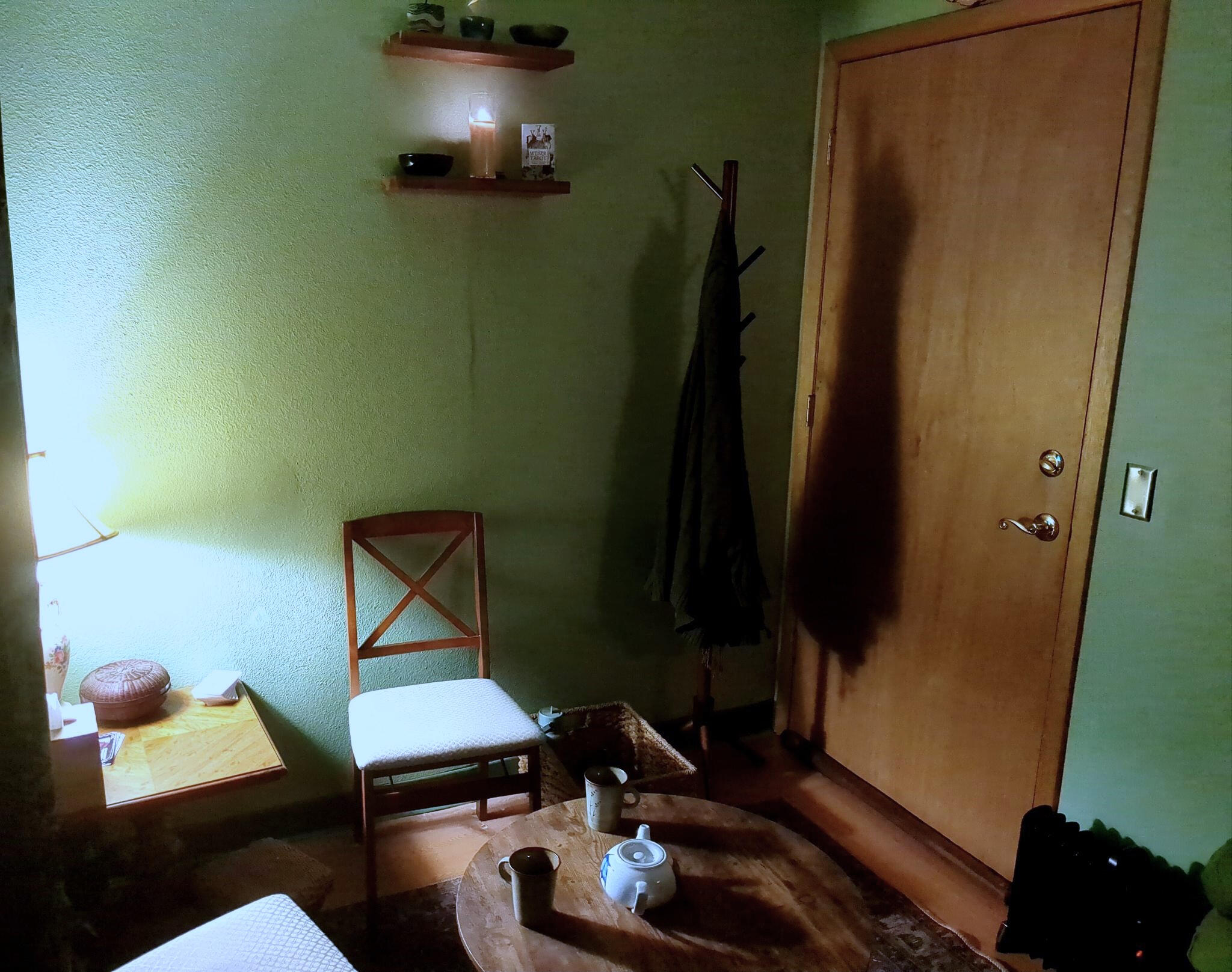 I work out of an office that is low-scent, low-lit, and wheelchair accessible. There may be scents from botanicals and botanical components present on any given day. For seating, I provide armless chairs with a 400lb weight capacity as well as cushions on the floor. I do bodywork off of a futon mat on the floor: if this won't work for your body, contact me and we can find an alternative arrangement.Trauma-Informed Care